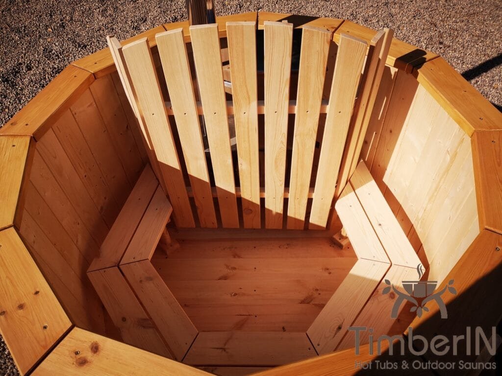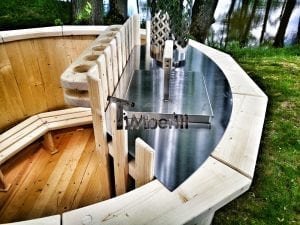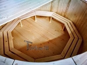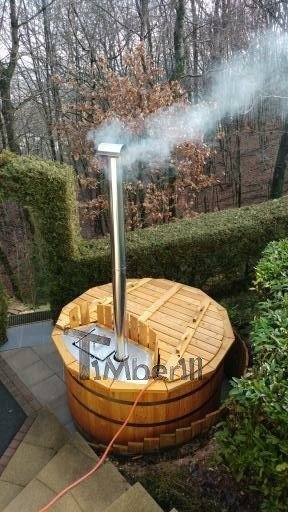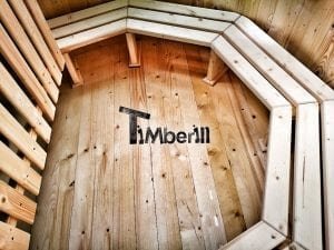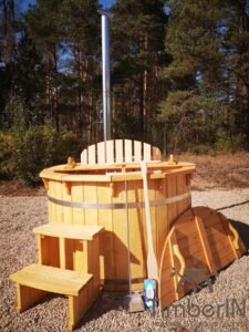 Ce que nous aimons dans ce bain nordique, c’est qu’il vous permet de chauffer l’eau de différentes manières. Vous pouvez utiliser un poêle électrique si vous le souhaitez, ou vous pouvez opter pour un poêle immergé. De plus, vous pouvez même utiliser facilement un poêle à bois externe. C’est vraiment génial, car cela vous donne plus de contrôle et garantit une merveilleuse qualité.
