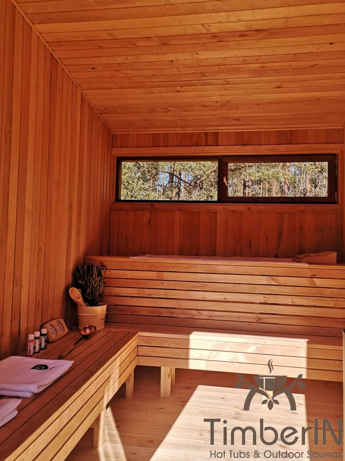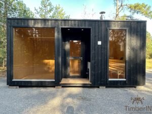 Les gens apprécient l’idée d’avoir une vue incroyable dans un sauna extérieur. Or, certains saunas de jardin modernes ne présentent pas cette caractéristique et c’est bien dommage. Le modèle de sauna moderne d’extérieur doté d’une façade en verre est l’un des meilleurs modèles que vous pouvez trouver actuellement et il offre certainement toutes les valeurs et tous les avantages, tout en repoussant les limites de manière créative. Il est unique et agréable, et vous trouverez qu’il transmet une qualité et des résultats extraordinaires. C’est la seule raison pour laquelle il vaut la peine de l’essayer. En outre, ce produit peut être réalisé en bois d’épicéa ou en bois thermos, en fonction de vos besoins.