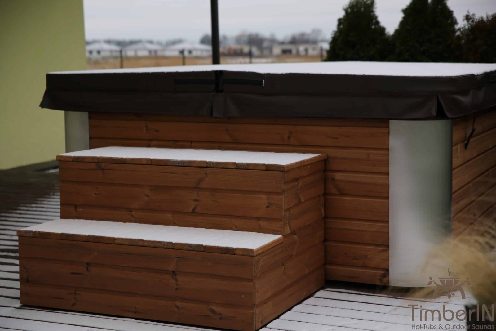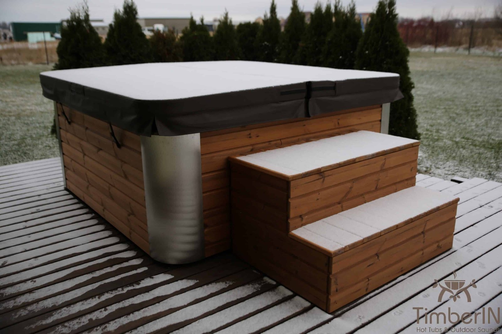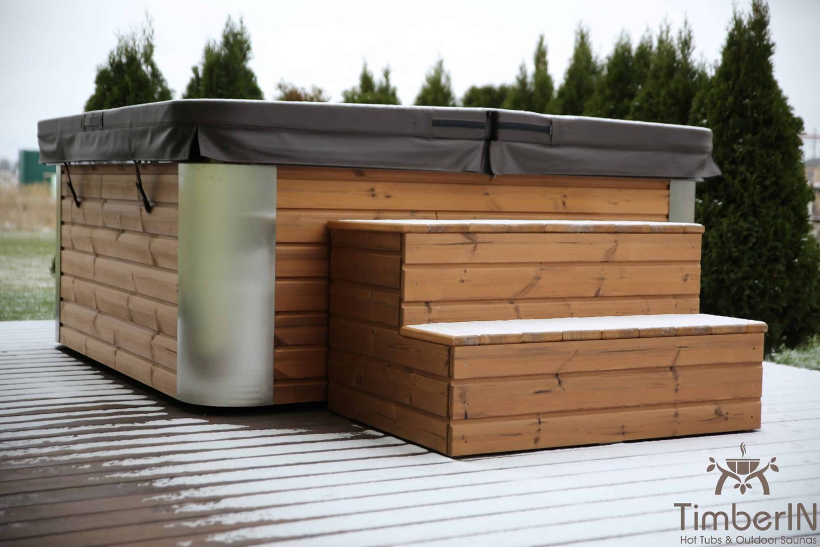 L’équipe TimberIN est fière de vous présenter ce grand modèle de spa en acrylique carré de luxe. Ce modèle est une combinaison parfaite d’un spa électrique conventionnel et d’un bain à remous de luxe de haut niveau – Jazzi.