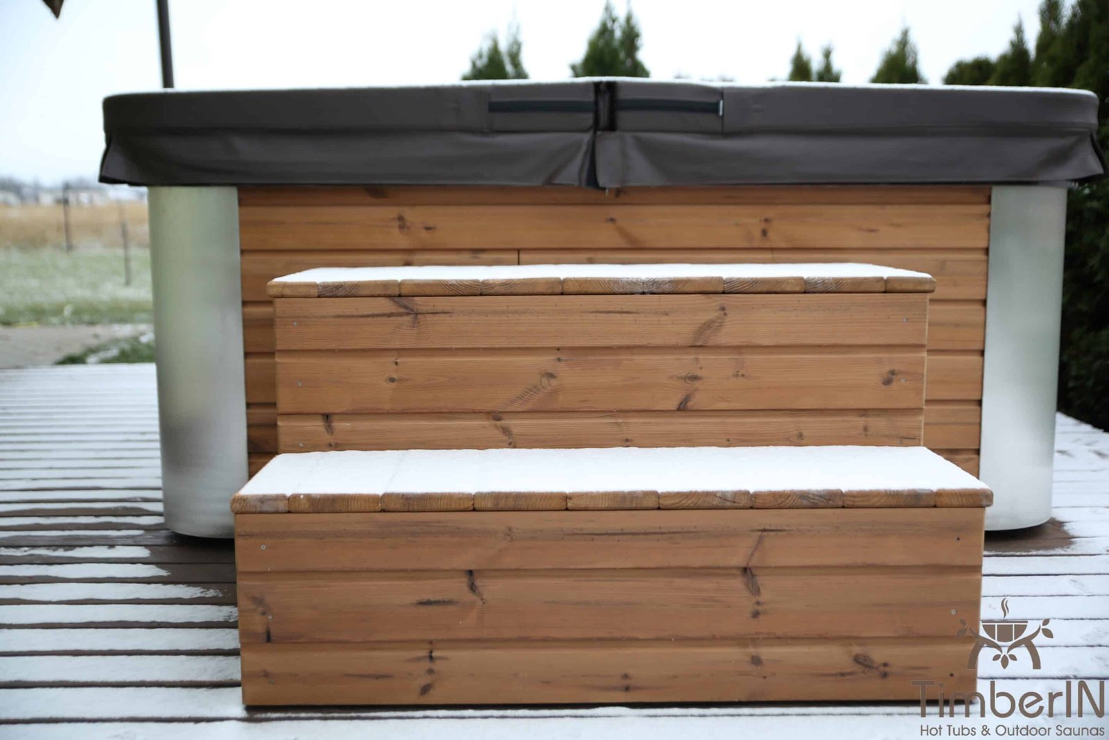 - Escalier luxueux et confortable pour un accès facile au spa.