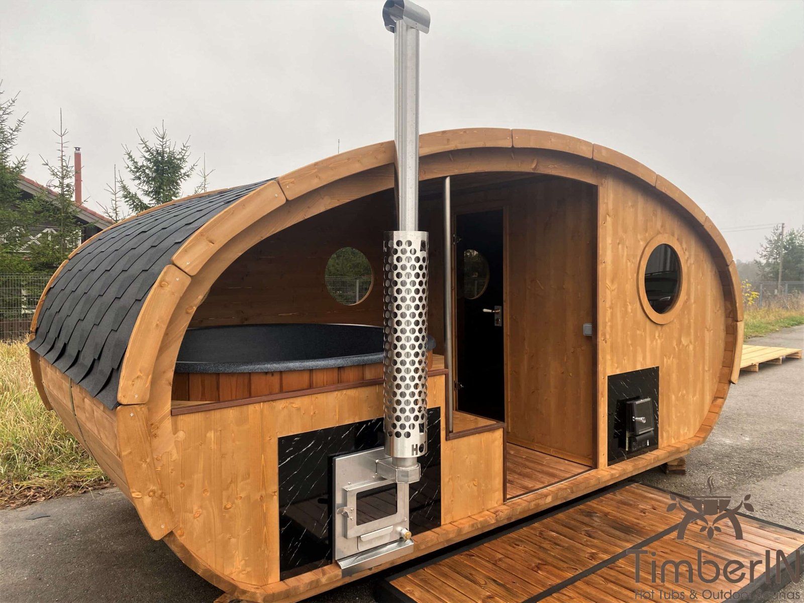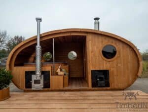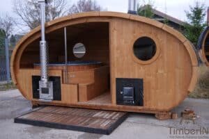 TimberIN présente fièrement ce projet unique et nouveau. Posséder un petit jardin implique parfois certaines limitations de ce qui peut y être installé, quelle est la taille idéale du produit, etc. Au cours de nos plus de 10 ans d’expérience, nous avons reçu beaucoup de questions sur ce s’il serait préférable de posséder un sauna extérieur ou un bain nordique. Eh bien, nous avons eu l’idée de fabriquer un produit combinant les deux mondes. Nous vous introduisons donc ici le sauna ovale extérieur avec bain nordique intégré.